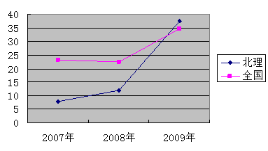 图为2007年-2009年司法考试金年会jinnianhuicom法学院与全国通过率数据比较