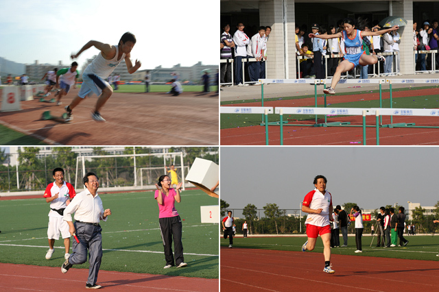 随后进行的比赛中,每一个运动员都尽自己最大的努力去参赛,展现了珠海学院学生的强健体魄和超凡毅力。大家秉承着友谊第一,比赛第二的精神,团结协作,共同努力。不仅运动员全力以赴,裁判员们也不辞辛劳,公正执法,为本次校运会的圆满举行增添了一笔亮丽的色彩。赛场上,运动员们飒爽英姿,看台上的观众们也不甘示弱,呐喊声、助威声、击掌声、敲鼓声,声声入耳,由各院学生会组织涌起的人浪,一浪高过一浪。