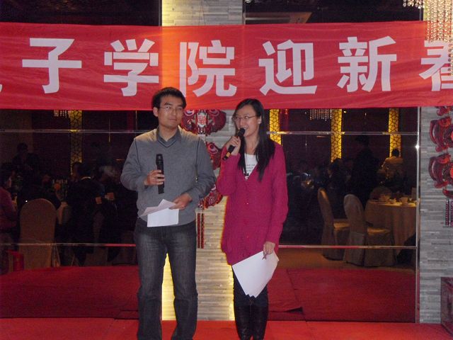 1月22日,信息与电子学院2010年迎新春团拜会隆重举行,全体教职工欢聚一堂,共迎新春。副校长赵显利出席团拜会,曾经在信息学院工作和学习过的校职能部门和其他学院的部分领导和老师也应邀参加了团拜会。团拜会由青年教师王晓庸和刘娜主持。