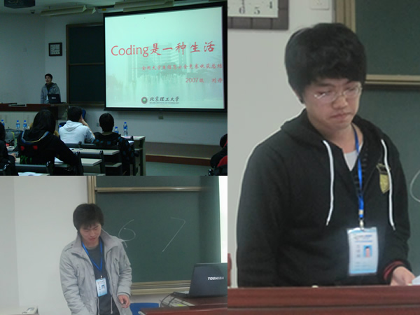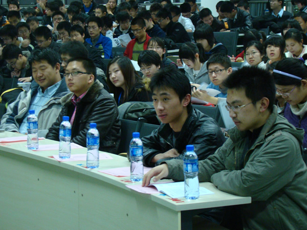 接下来,2007级优秀学长,全国大学生信息安全竞赛二等奖获得者刘丹、2009年全国数学建模一等奖获得者王飞和2009年全国计算机博弈大赛二等奖获得者唐志峰分别对各自参加的学科竞赛谈了自己的获奖感受,亲授参赛经验,也为同学们提出宝贵的参赛建议。