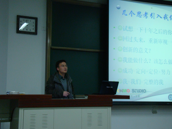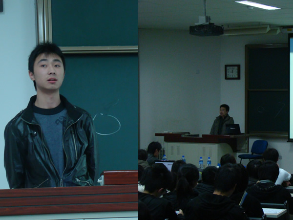 作为本次大会的特约嘉宾,2006级优秀学长杨蛟龙和2004级优秀学长林健也就自己参加竞赛的经历、大学的生活等方面与同学们做了交流。杨蛟龙跟同学们切身交流了他的学习历程,指出个人知识能力和团队相互协作的重要性,是取得成功必不可少的条件;林健学长提出要找到适合自己的兴趣乃至确立自己的研究方向,并为之努力奋斗等,令在场听众受益匪浅。