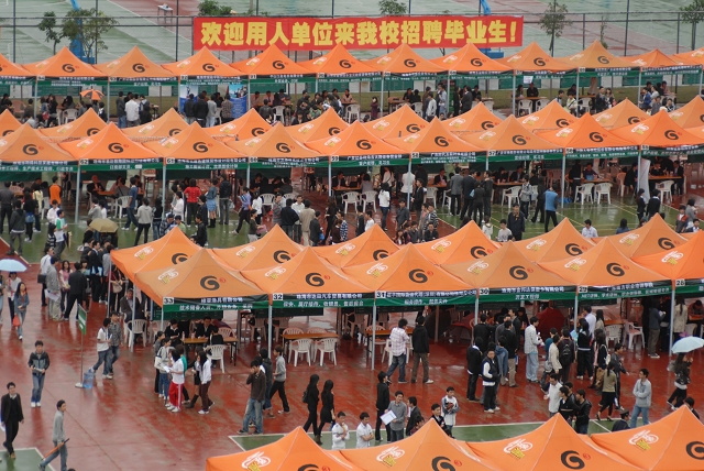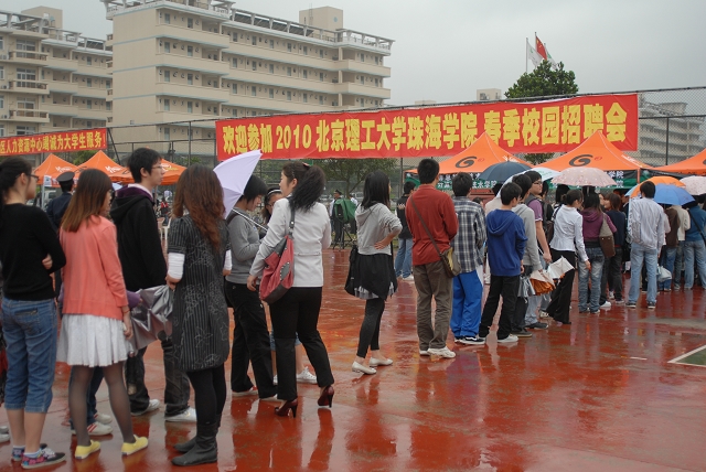 4月10日,我校珠海学院2010年春季校园招聘会在珠海学院体育运动场拉开帷幕。本次校园招聘会是由珠海市香洲区人力资源中心和金年会jinnianhuicom珠海学院共同举办,共吸引了包括澳国旅、银通新能源、乐通化工、人人乐商业、天威飞马、百胜餐饮(深圳)有限公司、台山市台澳铝业、中国土木工程集团珠海分公司、中德安联等来自珠三角地区约100家用人单位参会,主要集中在IT、机械、化工、金融、酒店、零售等,提供软件研发、程序员、工程师、生产技术员、市场营销、会计、行政人员、客服、美工设计等约370个职位,招聘岗位数约2400人,共吸引包括北理工珠海学院、北师大珠海分校、北师大-浸会联合国际学院、暨大等珠海高校应届毕业生约5000人参加。