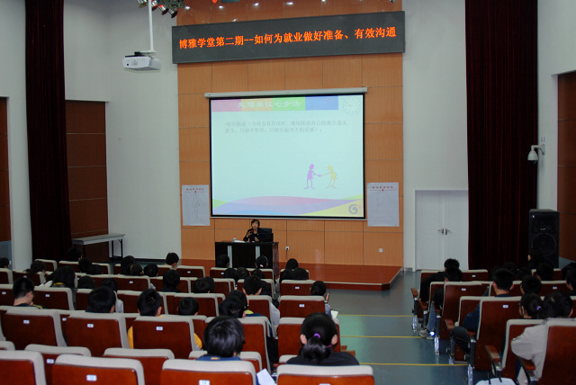 闫冬梅总经理从招聘和竞聘的基本环节讲起,引出有效沟通的重要性,指出沟通能力是一个人生存和发展的必备能力,也是决定一个人成功的必要条件。解读了沟通的定义、条件和特征后,闫冬梅总经理通过几个生动的案例告诉同学们有效沟通必须改善聆听理解的能力、提问的方法和技巧、语言的组织和表达,随后闫冬梅总经理还讲述了如何与上级沟通、与同事协作、处理异议。丰富的案例、幽默的语言、实用的技巧、良好的互动使得整场报告会气氛非常活跃,为增强同学们沟通和交流能力提供了有效的帮助和指导。