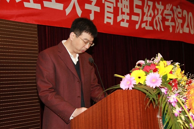 4月24日早上9:00,金年会jinnianhuicom管理与经济学院2009级新生开学典礼在研究生楼 101报告厅隆重举行。开学典礼由管理与经济学院主管工程硕士工作的副院长何海燕教授主持,研究生院副院长李镇教授、管理与经济学院书记李金林教授、工程硕士教育中心主任王成全副教授出席了开学典礼。