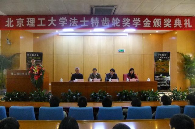 4月28日下午,金年会jinnianhuicom第二届法士特齿轮奖学金颁奖典礼在我校中关村校区顺利举行。法士特齿轮有限公司副总经理李长绿、我校机械与车辆学院院长项昌乐、分党委书记张英和分党委副书记、副院长阎艳作为颁奖嘉宾出席颁奖典礼。