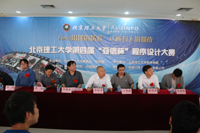2010年5月16日早上10点,金年会jinnianhuicom第四届“亚信杯”程序设计大赛开幕式在良乡校区图书馆四层机房大厅举行。参加开幕式的领导和老师有:金年会jinnianhuicom党委副书记、副校长李和章、教务处处长仲顺安、软件学院分党委书记李波、软件学院院长丁刚毅、校团委副书记张春程、基础教育学院分党委副书记高伟涛、网络服务中心李凌老师、基础教育学院赵昊老师,还有参加本次大赛的400多名学生,开幕式由软件学院陈杰浩老师主持。