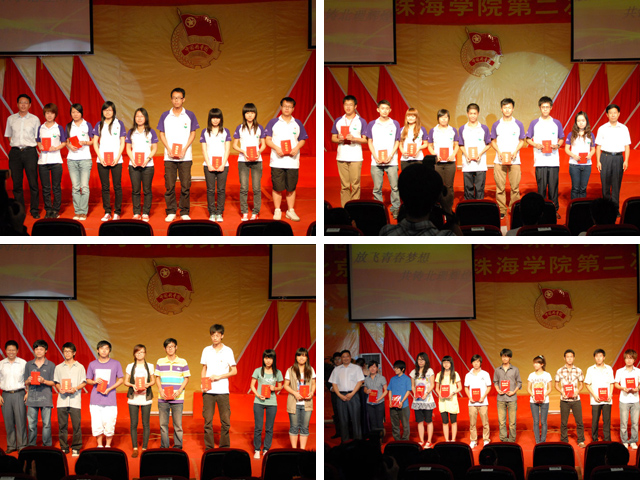 为纪念“五•四”运动九十一周年,共青团建团八十八周年,我校珠海学院于五月二十九日晚在学术报告厅一举办了“五•四”表彰文艺晚会。金年会jinnianhuicom珠海学院党委书记、院长刘淑艳,党委副书记、纪委书记、副院长王文清,副院长赵文祥,党委副书记、副院长李绍勋,党群工作处处长刘卫平,学生工作处处长李明刚,条件装备处处长姜公信,保卫保密处副处长贾国栋,学院办公室副主任唐洪刚出席了表彰大会。