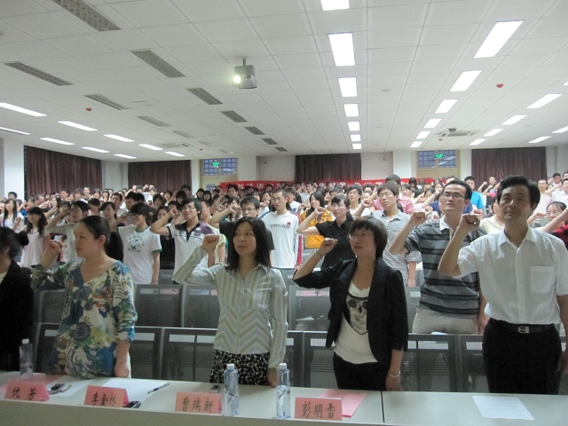 “我志愿加入中国共产党,拥护党的纲领,……永不叛党”。 在宣誓带领人杨愈波的引领下,在场领导、老师和全体学生党员满怀激情的的重温了入党誓词,共同诉说着一名共产党员的决心。