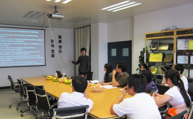 本次学术沙龙活动,李川昀博士以“关于生物信息学在药物成瘾研究中的应用”为主题,结合自己的研究工作,介绍了关于基因通路、遗传易感性和分子演化方面的相关知识和最新研究进展。在沙龙活动中,李博士用通俗易懂的语言以及小笑话、生活实例、卡通图片等加以说明和阐述,使深奥的生物信息学知识变得生动有趣,大大提高了同学们的学习兴趣。随后,与会师生与李博士展开了热烈的讨论,大家踊跃发问,积极与李川昀博士交流。