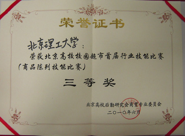 为进一步提升高校校园超市的经营管理水平和服务水平,激发超市员工立足本职、学习技能、提升服务的热情,加强高校商贸同行间的沟通与交流,2010年6月5日,在北京化工大学举办了校园超市行业岗位技能方面的比赛,这是继去年全国高校后勤系统举办了全国大赛之后北京高校后勤协会举行的首届超市职业技能大赛。