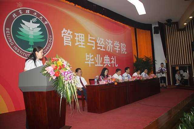 典礼在雄壮的国歌声中拉开帷幕。管理与经济学院院长魏一鸣教授首先致辞,向圆满完成学业的2010届毕业生表示祝贺。随后,魏院长对全体毕业生表达了期望,希望毕业生们能够继续努力拼搏,树立积极乐观的人生态度,勇于迎接挑战,在新的征程上书写新的华彩篇章。