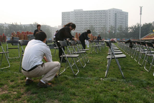 下午在幼教中心、接待中心、集团财务部、动力中心、商业中心等多个部门的紧密配合下和协助下,从准确测量间距到精心摆放每一把座椅,后勤员工又一次高效、优质地完成了学校的重大任务,为北理工的今天辛勤工作着、无私奉献着!