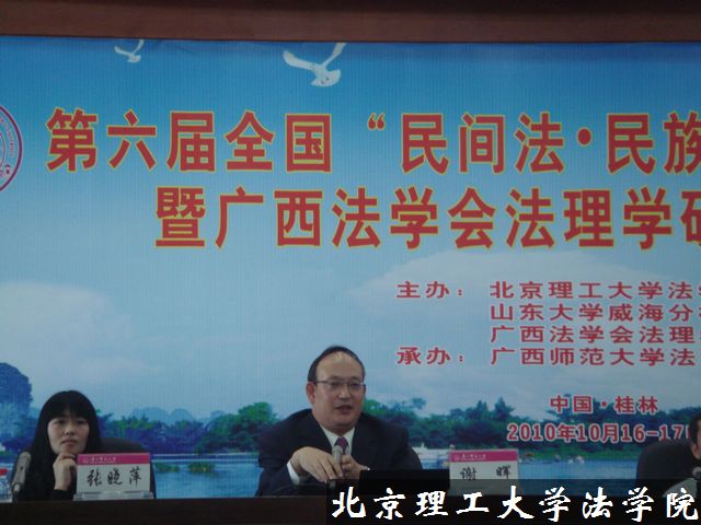 10月16日上午,由我校法学院谢晖教授发起、我校法学院作为首位主办单位的第六届全国“民间法•民族习惯法”学术研讨会,在广西桂林市广西师范大学召开。来自全国各地的高校、社会科学院、研究所、人民法院、人民检察院、律师事务所的代表共120多人参加了此次研讨会。