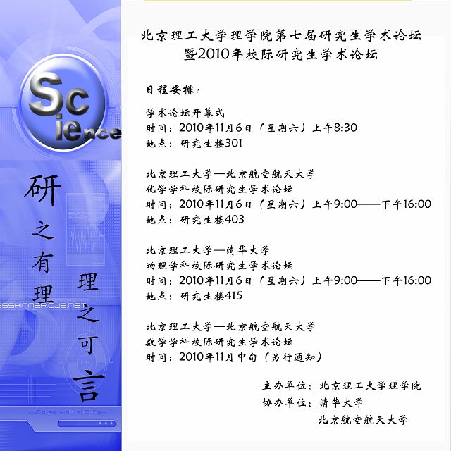 附:金年会jinnianhuicom理学院第七届研究生学术论坛暨2010年校际研究生学术论坛日程安排
