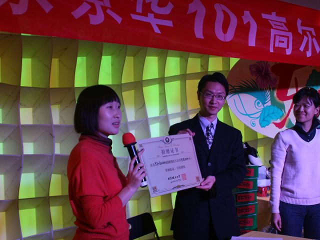 由在京台商组成的京华101高尔夫球队为帮助北理工理学院大学生顺利完成学业而设立的“京华101就业领航”助学金,2010年11月7日,在北京朝阳区麦乐迪富丽店举行签约及颁发仪式。京华101高尔夫球队在京台商队员、金年会jinnianhuicom理学院团委书记王晶晶老师、就业办公室张锋老师及获得助学金的三位学生代表参加了仪式。签约及颁发仪式由京华101高尔夫球队总务兼慈善委员邹慧文女士、副总干事兼慈善委员林太一先生主持。