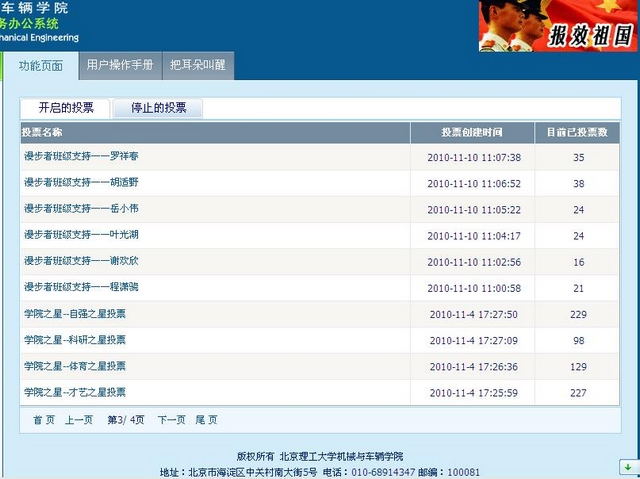 机械与车辆学院“学院之星”活动,学院团委一年举办一次的评优活动。该项评选重在表现在校学生们的多样生活,突出其个性化发展,引导优秀学生将自己的特长特点投入到为广大同学服务中来,真正成为广大同学的知心朋友。本届活动中,共有来自各个专业、各个年级的51名同学报名参选,经过材料初审,确定了23名同学作为晋级下一轮的候选人。为了带动更多同学的关注、支持和监督,学院针对此23人进行了网络实名投票,根据投票在各方面选出2名进入决赛的同学,因此也保证了“学院之星”的群众基础。