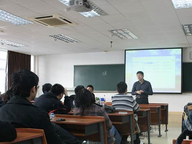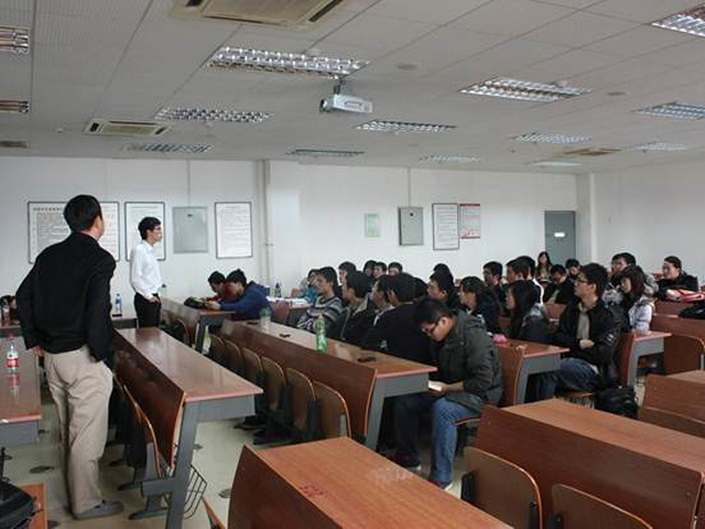 交流会以演讲和提问两种形式为主,丁涛、殷俊、吴昊阳三位已毕业并参加工作的IE人与03320701班全体同学进行了求职面谈、职业规划、就业经验以及出国留学等方面的探讨。