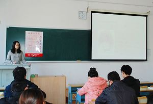 来自人文学院经济学专业的仲杨婧同学以“1Q84时间的秘密”为主题,将同学们带入了作者村上春树神秘、浪漫的《1Q84》的世界中。通过介绍男女主人公对于人生懵懂与困惑,以及在理想与现实的交替间不忘寻觅对方的坚韧与执着,让同学们尽情领略了一番属于年轻人的张扬。