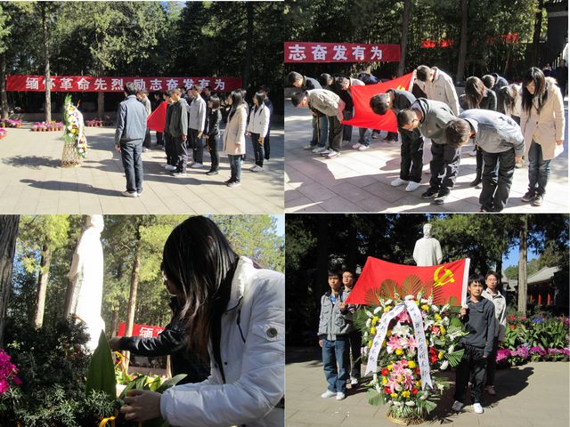 清明节来临之际,为缅怀革命烈士李大钊同志,增强团员们爱党爱国热情,同时促进团支部互帮互助的氛围,经过班级委员们精心策划,骑车环保踏青,缅怀革命烈士活动于2011年4月3日早如期举行。