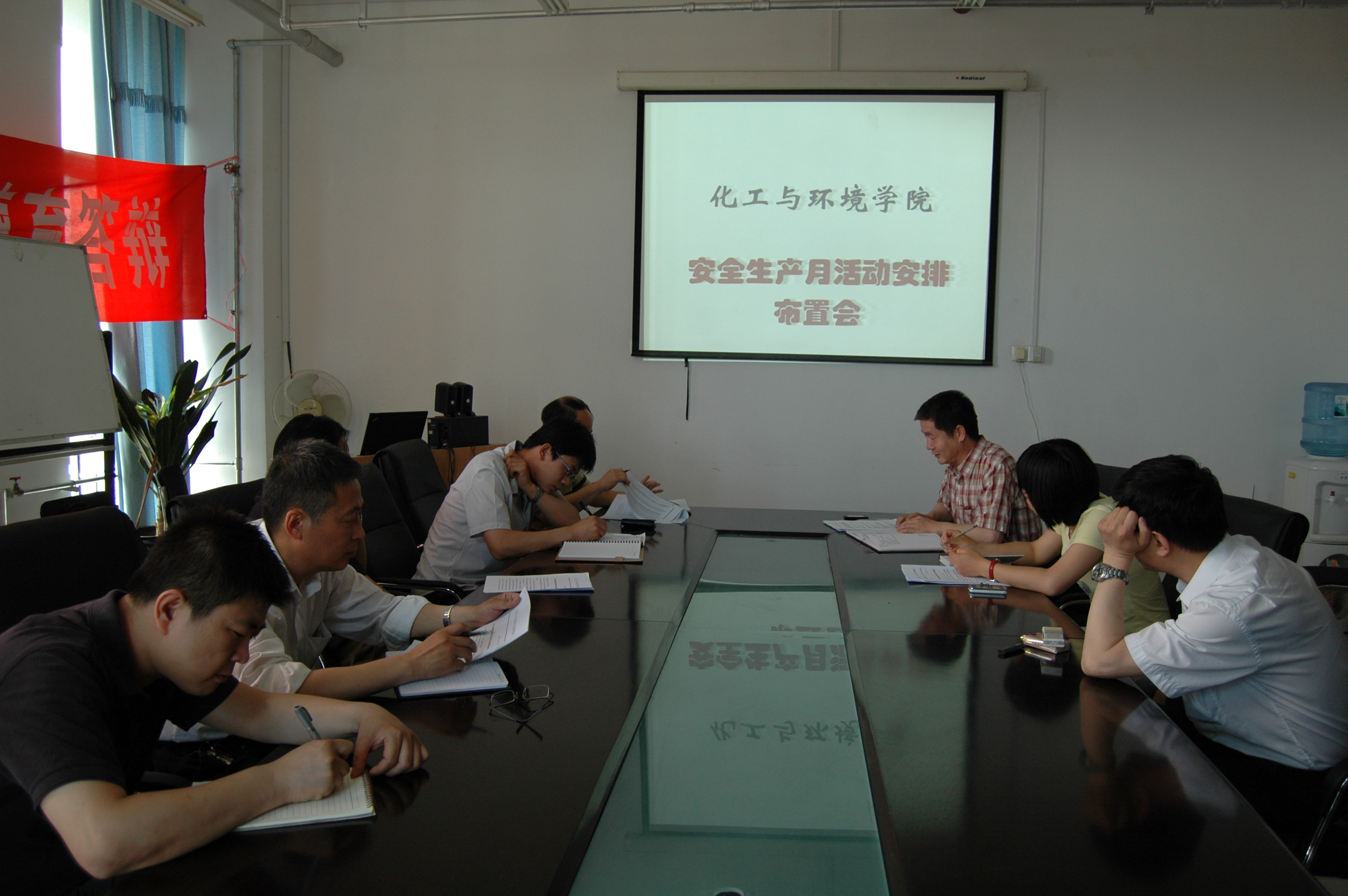 与会人员经过充分讨论,确定了《化工与环境学院2011年“安全生产月”活动方案》,主要包括:营造安全氛围,广泛开展宣传工作;深化培训效果,各系根据专业特色开展系统的培训工作;全面检查及整改,由院系两个层面进行检查和整改,对存在安全隐患的角落进行规范和及时整理。