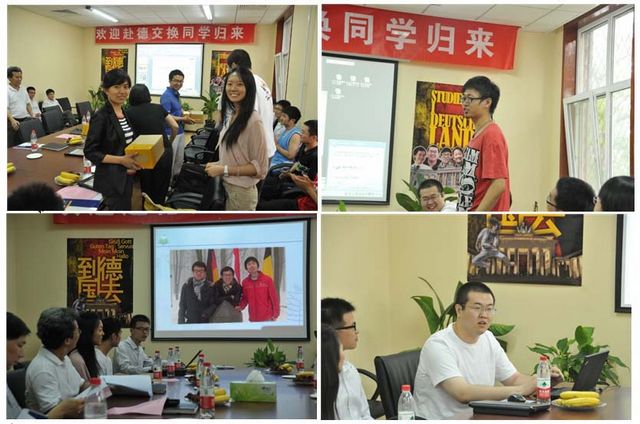 德国交换项目是在学校国际交流合作处和教务处的领导和支持下、由机械与车辆学院组织的本科生国际交流项目,交换学生在德国大学完成大四阶段的课程学习和毕业设计。2009年,机械学院派出1名2006级本科同学赴亚琛工业大学交换学习(该同学现在亚琛工业大学攻读硕士学位),2010年派出2007级6名同学,2011年即将派出17名2008级本科同学分赴德意志慕尼黑工业大学、卡尔斯鲁厄理工大学、亚琛工业大学、汉诺威大学交换学习一年。在2007级赴德交换同学归国欢迎汇报会上,邱玲莹、崔振海、张鲁江、贾强、李臻、令狐静西等同学汇报了他/她们在慕尼黑工业大学、卡尔斯鲁厄理工大学(原卡尔斯鲁厄大学)、亚琛工业大学的学习,他/她们围绕德国宁静而充满激情的大学生活、赴德学习期间的注意事项、德国大学毕业设计、申请交换项目相关事项等留学生活向教务处、国际交流合作处、机械学院的领导和老师们以及2008级即将赴德交换的同学们做了详细的报告。教务处、国际交流合作处的领导们对邱龄莹等同学在德国顺利完成学业并全部成功获得在德国大学攻读研究生的机会表示祝贺。机械学院院长项昌乐教授在讲话中指出,六位同学在国外一年的学习生活中经历了很多锻炼,从国外带回来的各种感悟和经历也为学院的人才培养工作提供了积极的借鉴,学院将在学校各部门的支持下进一步扩大德国交换项目的规模,支持更多的同学到德国深造。