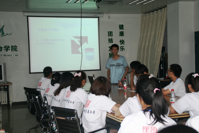 7月11日下午,北理工2011年全国优秀大学生生命科学夏令营在开营之后,举行了首次活动,为了进一步帮助营员同学了解生命学院的相关情况,夏令营组委会特别组织营员参观了生命学院位于5号教学楼6、7层的先进实验平台。为了加强安全工作,在参观前,特别对全体营员同学开展了实验室安全方面的专题培训。