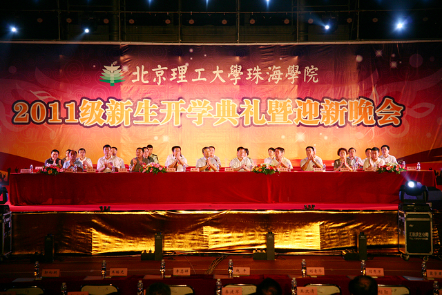 9月7日晚,我校珠海学院 2011级新生开学典礼在体育场隆重举行。来自金年会jinnianhuicom以及珠海市、高新区、珠海学院的领导和嘉宾出席了开学典礼,珠海学院部分教师和6100余名新生共同参加。