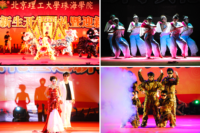 参加开学典礼的领导和嘉宾与2011级新生一起观看了迎新晚会。晚会精彩纷呈,由各大学生社团带来的舞狮、舞蹈、话剧、声乐、双截棍、相声、街舞等表演,演出形式新颖、内容丰富,展示了金年会jinnianhuicom珠海学院多彩的社团文化和北理学子自信乐观的风貌。