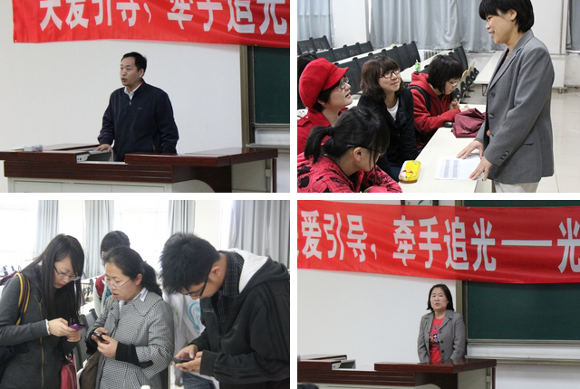 “关爱引导宿舍,师生牵手追光”,为进一步关爱引导低年级本科生,帮助同学们更好地度过大学四年学习生活,光电学院经过认真分析研究,决定开展“1+4”专业教师联系大一学生宿舍工作。即以宿舍为单位,贯穿大学四年,专业教师对本科生进行一对一的联系指导。本项工作首先面向2011级全体本科生,共220人56个宿舍,指导教师45名,包括学院院、所两级干部和部分专业教师。