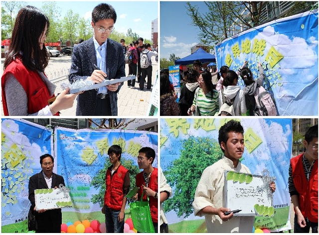 4月25日,主题为 “绿色北理,放飞希望”的世界地球日外场活动在良乡校区北食堂外举行,活动旨在将环保理念引入校园文化生活,提高同学们的环保意识,掀起环境保护的热潮。活动现场气氛热烈,500余名在校师生积极响应号召,参加到活动当中来。大家积极参与环保视频录制,表达自己对地球母亲的美好祝愿。展板上由同学们张贴的绿色叶子贴纸,代表着同学们的环保之心。