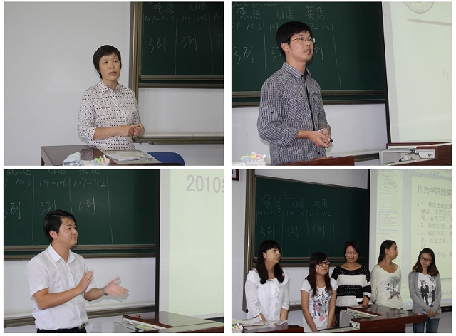 会上,教学干事侯惠苗、周芳集、韩兴杰分别就自己所负责的工作范畴向同学们做了介绍,涉及考试、学分、转专业、外国语学院学生事务管理系统、党建工作、团系统工作、学院规定、学生组织等详细解答了同学们的疑惑,同时也为日后开展工作奠定了良好的基础。