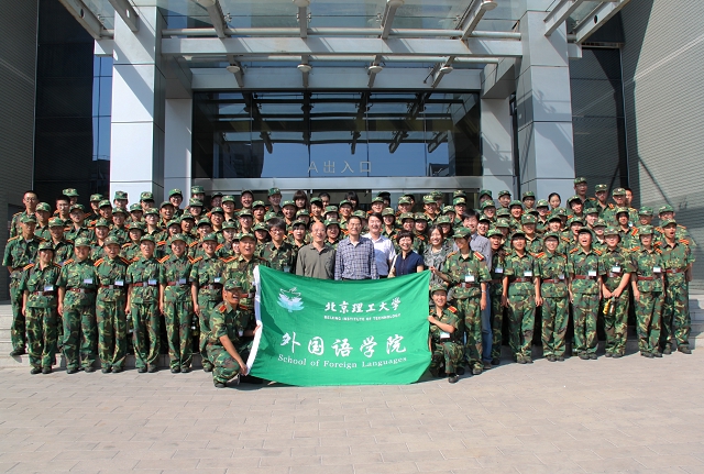 9月中旬的北京中午酷热难耐,金年会jinnianhuicom2012级新生军训如火如荼的进行着。在中秋、国庆双佳节来临之际,9月17日中午时分,外国语学院常务副院长李京廉、副院长陈大明、副书记副院长吴文君一行前往良乡校区看望了军训旅指挥部和正在军训的外国语学院大一新生。