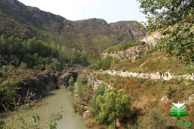 百里山水画廊位于延庆县东北部千家店镇,属延庆生态涵养区的核心区。教职工们一路谈笑风生,饱览秋色,游览了花海葵园、延庆硅化木国家地质公园、乌龙峡谷、龙王庙等景区。在全国科普教育基地—延庆硅化木国家地质公园,教职工们通过听取讲解、观看硅化木实物,接受了一次地质科普教育。游览过程中,教职工用镜头记录下美丽的风景和教职工的风采,整个活动充满了热烈欢快的气氛。