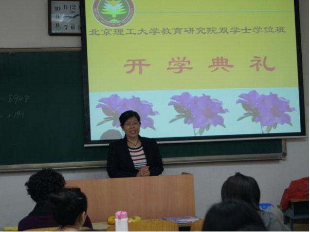 2012年10月13日早9:00,在中关村校区3号楼311教室,教育研究院和教务处联合举行了我校首届教育学双学士学位班中关村校区的开学典礼。二十余名新同学参加了此次典礼。教务处曹峰梅副处长、教育研究院庞海芍书记、教育研究院学科责任教授马永霞教授、双学位项目负责人郜岭老师、任课教师张建卫老师、靳贵珍老师、包海芹老师、教学干事双学位班主任张国利老师出席典礼仪式。