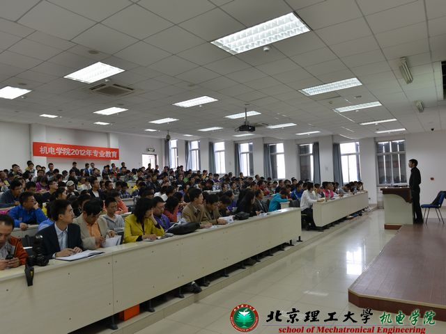10月14日下午,机电学院在良乡校区开展2012年新生入学教育。院长焦清介教授主持本次专业教育,学院无人飞航系、能源与动力工程系、安全工程系、力学工程系、机电系统工程系、探测与控制工程系、智能机器人研究所系领导、院办、学院团委和2012级新生全体班主任参加。学院2012级全体新生及2011级部分学生聆听了一场生动的专业教育课。