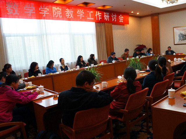 10月20日上午8点,金年会jinnianhuicom数学学院教学工作研讨会顺利举行。教务处副处长杨刚教授、数学学院党委书记高伟涛老师、数学学院副院长陈一宏教授、副院长史福贵教授、党委副书记副院长衡靖老师以及数学学院全体教师参加了本次研讨会。本次会议主旨是为了提高人才培养质量,针对数学基础课程教学改革的趋势和教学方法进行了深入全面的交流讨论。
