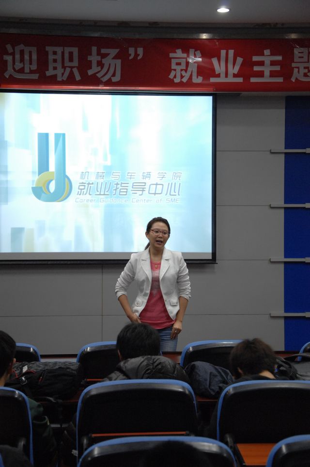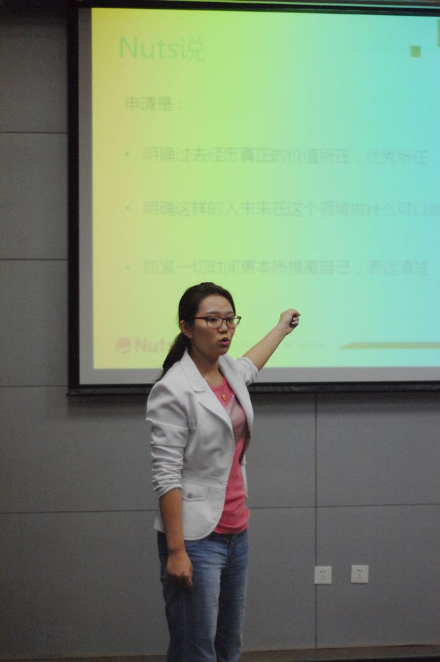 11月9日星期五晚七点,继第二场活动“就业形势分析会”成功举行并获得参与师生一致好评后,第四届“笑迎职场”系列活动第三场“留学加油站”如期在车辆实验楼二层报告厅举行。Nuts graduates的核心咨询师刘贝斯担任本场活动的主讲嘉宾,嘉宾根据前人申请实例,针对同学们对留学申请提出的问题,解惑答疑,为学生明确申请思路、帮助同学们掌握申请规律。