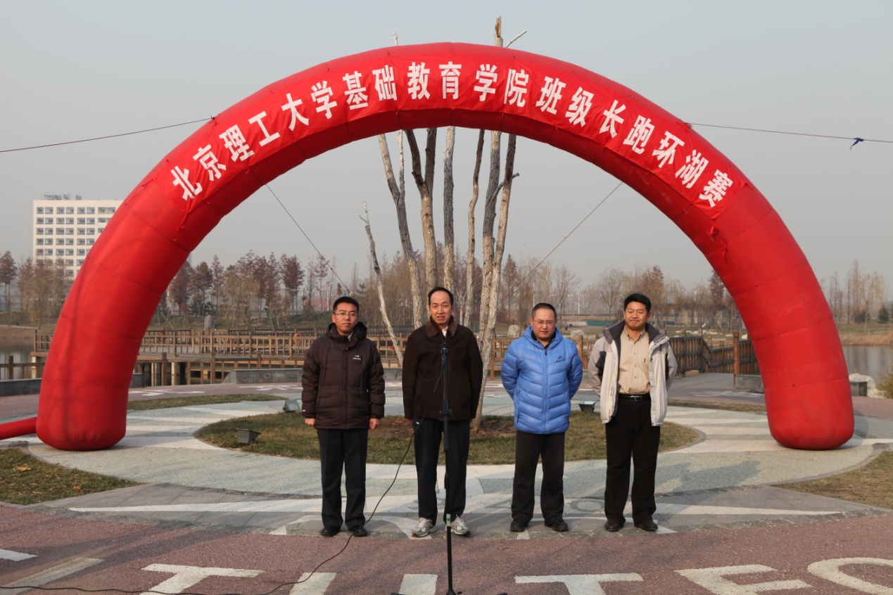 2012年11月27日下午2点,基础教育学院第四届班级长跑环湖赛在良乡校区北湖成功开幕。基础教育学院常务副院长张青山,副书记、副院长丛磊,办公室主任杨艳波及全体学生工作干部与参与当天比赛的二百余名学生一同参加了开幕式,仪式由2012级光电专业辅导员付丹丹主持。
