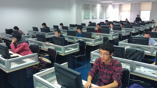 下午1点,同学们高昂地走入赛场,而赛场的氛围足以让人感受到同学们的竞赛热情和信心。经过28日的热身赛,很多同学都熟悉了比赛环境和过程。本次大赛题目全部原创,来自我校ACM现役队员的精心设计和思考。比赛过程中,从选手们紧绷着的脸颊上,大家可以看到他们的专心与努力,每过一道题目,不仅是对自己的肯定,更让他们在通往ACM队中迈近了一步。虽然在比赛过程中会遇到问题,但是他们却毫不松懈,坚持参加并顺利完成了比赛。