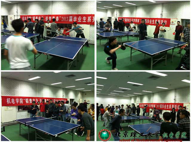 三月草长,春意渐浓。机电学院2009级本科毕业生用他们的激情为我们演绎了一场精彩的乒乓球赛。3月30日、31日在体育馆地下乒乓球场,机电学院举办了毕业生乒乓球比赛。经过激烈的淘汰厮杀,最终09级弹药班以较大优势摘得桂冠,本硕博、机电二、机电一分别列获二三四名。辅导员王鹏翔老师也在比赛现场为各班级加油助威,毕业生各班级均派出了运动员和拉拉队参与了本次比赛。