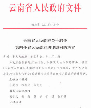 北理工法学院院长曲三强教授被续聘为云南省政府法律顾问