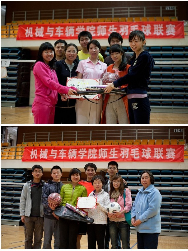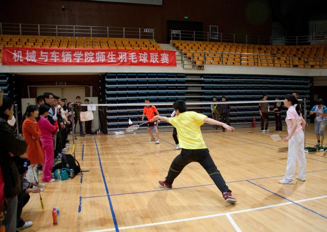 2013年4月3日,机械与车辆学院师生羽毛球赛决赛在体育馆激烈开战,争夺冠亚季军的两场精彩比赛也为从3月份开始、为期三周的学院师生羽毛球赛划上了圆满句号。北京的春天乍暖还寒,此次羽毛球赛旨在让全院师生在这个季节踏上运动场,全民健身,切磋球技,增进交流。