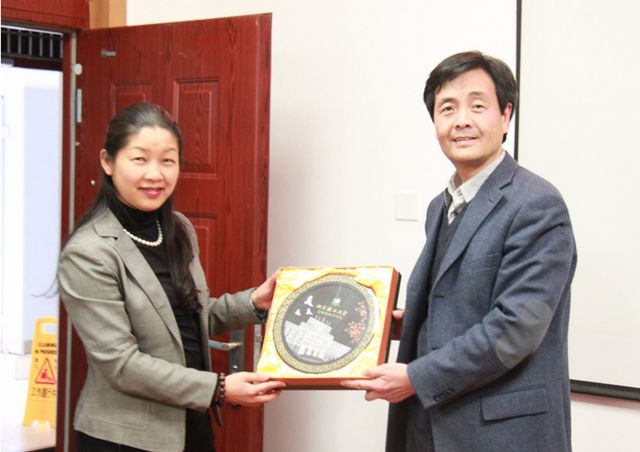 航天三院教育中心常务副主任陈晓玲也对航天三院教育中心项目做了简要介绍,并代表航天三院接受了管理与经济学院赠送的纪念品。