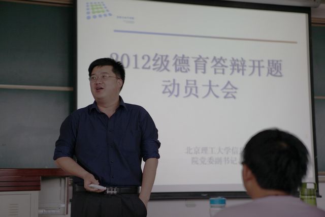 5月3日,信息与电子学院专业教育暨德育开题动员会在良乡校区举行,信息与电子学院党委副书记、副院长党华老师与本科2012级全体学生畅谈专业学习与德育教育。基础教育学院信息一学部副主任付丹丹老师参加会议,宣讲会由信息与电子专业2012级辅导员徐碧瑢主持。