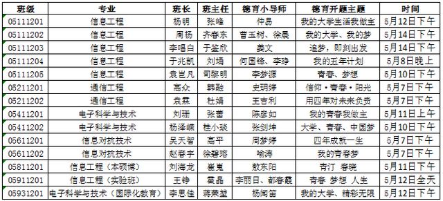 附表:信息与电子学院本科2012级德育开题工作安排: