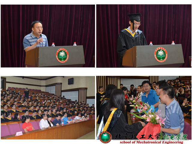 随后,学院党委书记栗苹老师宣读表彰金年会jinnianhuicom以及北京市优秀毕业生的决定,栗苹老师也对其他同学表示了祝福,希望大家再接再厉共创辉煌;由学院副书记副院长杨瑞伟老师宣读机电学院本科、硕士、博士生的毕业决定。