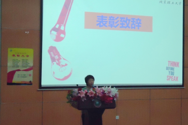最后,外国语学院党委书记陈大明教授讲话。他代表学院领导对所有受表彰的同学和集体表示祝贺,勉励没有获奖的同学不要气馁。成绩只是代表过去,未来的路还很长,只要我们不停止前进的脚步,最终我们肯定能到达胜利的终点。