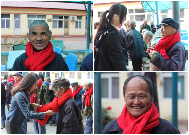 书法比赛过后,同学们为老人们献上了节日礼物——红色毛线围巾,它传递了北理工设计学子对老人们的真挚祝福。在活动过程中,同学们还为老人们送上了一些点心和糖果,这些慰问品虽然不多,但老人们的一张张笑脸足以让同学们感受到他们不仅甜在嘴里,更甜在心上。
