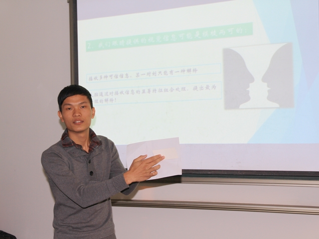 12级本科生赵恩和杨云龙小组在讲解大脑是如何处理接收的信息