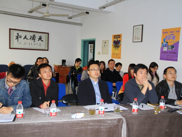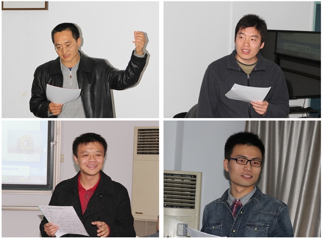 选手、评委和观众在比赛中参与互动,整场比赛掌声阵阵,高潮迭起。经过激烈的角逐,比赛最后有十组选手脱颖而出:11级研究生郭小姣、13级研究生张小琴获得一等奖;12级本科生赵恩和杨云龙小组、13级研究生赵晓博、11级本科生杨梅、12级本科生谢富勇、袁恺和肖常涛小组获得二等奖;11级本科生朱常青、11级本科生李天佑和侯哲小组、11级本科生朱豪杰和马泽小组、12级本科生翁建宏和刘烨超小组获得三等奖。评委老师分别为获奖者颁奖并合影留念。